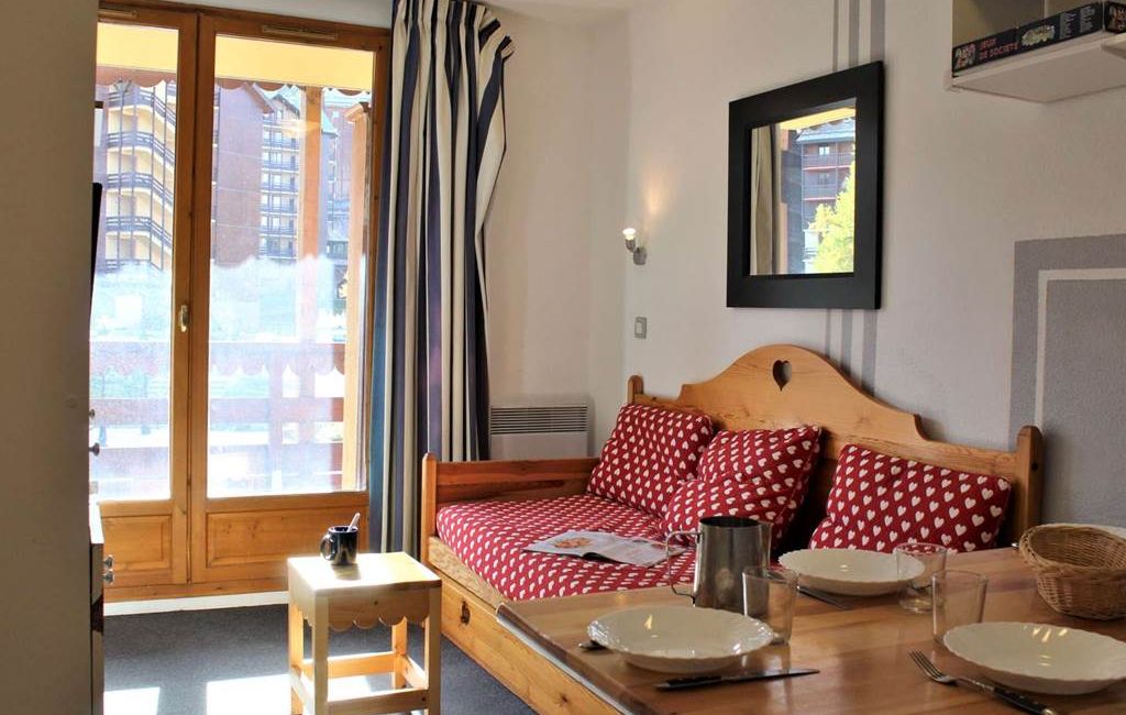 Situé dans une résidence en haut de station, à quelques pas des pistes, le couchage de cet appartement s’organise autour d’un coin montagne avec deux lits superposés, d’un séjour avec un lit gigogne (2 personnes) ainsi que d’une chambre avec un lit gigogne (2 personnes). L’appartement est également équipé d’une kitchenette équipée, d’une salle de bain avec baignoire, et d’un WC indépendant. L'appartement dispose aussi d'un casier à ski.