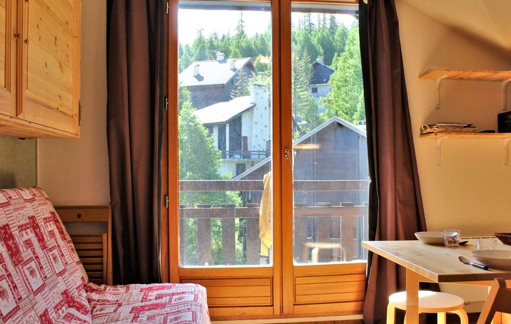 Situé sur le bas de la station dans une résidence au calme, ce studio se compose d'une entrée avec deux lits superposés et d'un séjour avec canapé clic-clac 2 personnes avec télévision. L'entrée est séparée du séjour par une porte. La cuisine est équipée d'un réfrigérateur, de deux plaques de cuisson électriques, d'un four et d'une cafetière électrique. La salle de bain est composée d'une baignoire, et les WC sont indépendants.