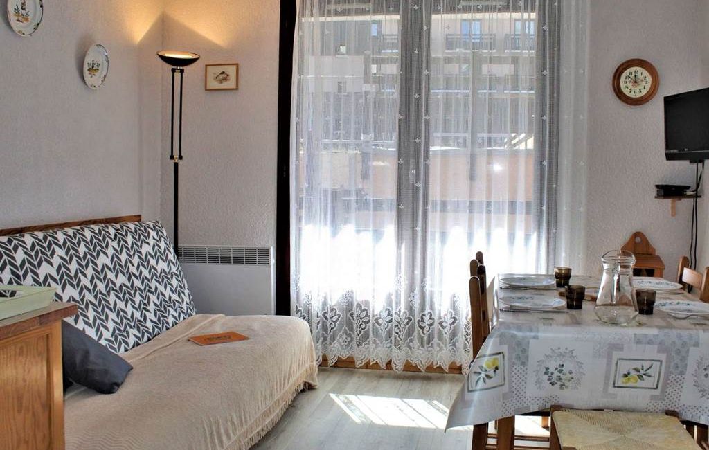 Dans une résidence située en pied de pistes et au centre de la station, cet appartement est agencé de la manière suivante : un coin montagne avec 2 lits superposés, une salle de bain, un wc indépendant et une kitchenette ouvrant sur un séjour avec un clic clac pour 2 personnes. L'appartement dispose aussi d'un casier à ski.
