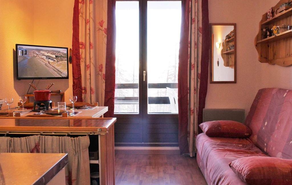 Situé en bas de la station dans une résidence au calme, ce studio est équipé d'un canapé clic-clac deux places dans le séjour, de deux lits superposés à l'entrée séparé par un rideau, d’une cuisine équipée et d’une salle d'eau avec douche et lave-linge. Les WC sont indépendants. L'appartement dispose aussi d'un casier à ski.