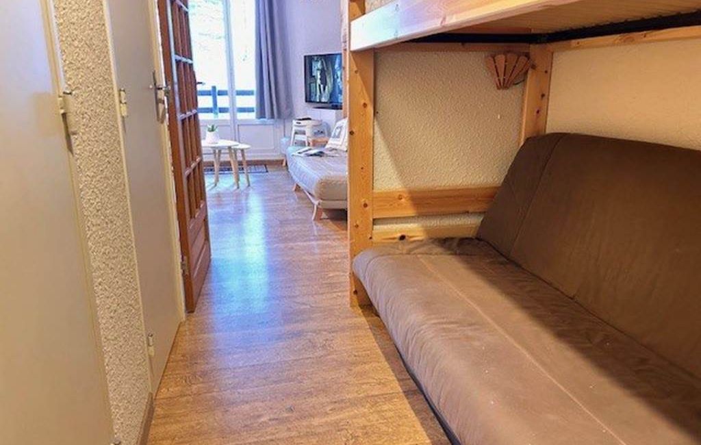 Ce logement, au premier étage avec ascenseur, s'organise autour d'un canapé clic-clac dans un coin montagne avec un lit mezzanine au-dessus et d'un canapé Rapido au séjour.