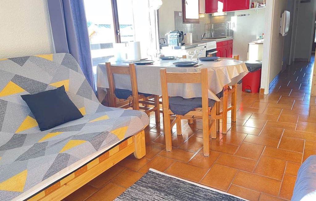 Situé au cœur de la station, dans une résidence en pied de pistes, cette location de vacances s'organise autour de deux lits superposés dans une cabine, un lit double dans une chambre et un canapé clic-clac au séjour.