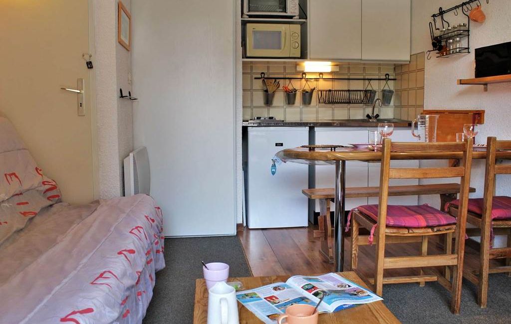 Situé en bas de la rue commerçante, ce logement est proche de tous les commerces et de toutes commodités. Il se compose: dans l'entrée d'un lit superposé (soit 2 couchages simples) séparé du séjour par une porte coulissante, et dans la pièce à vivre d'un canapé clic-clac deux personnes. La cuisine est équipée d'un four, d'un micro-ondes, d'une cafetière, d'un grill-pain et d'un appareil à raclette. La salle de bain dispose d'une baignoire et d'un WC.