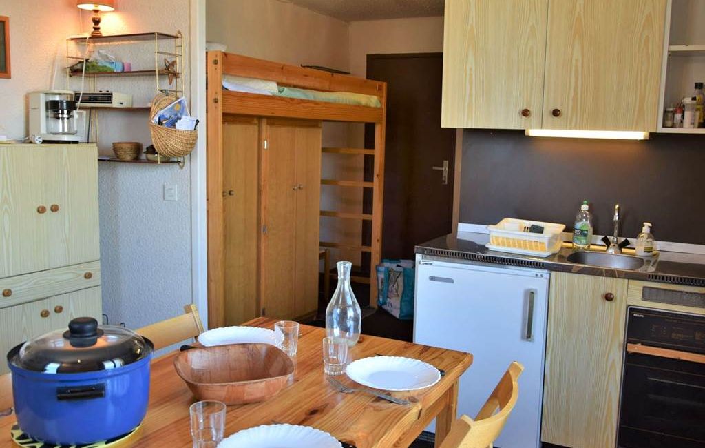 Situé en bas de la station dans une résidence au calme, ce studio cabine est équipé d'un clic-clac en 140cm dans le séjour et d'un lit simple superposé et de deux lits une place superposés dans le coin cabine. Les WC sont indépendants de la salle bain et la cuisine est équipée.