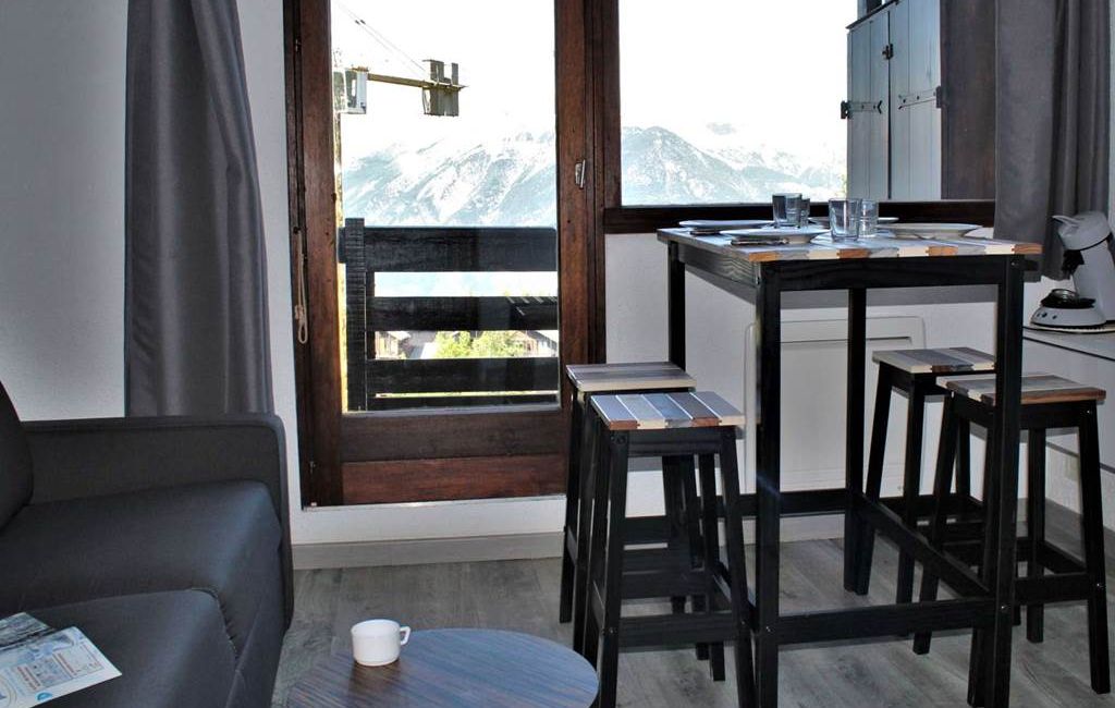 Situé dans une résidence en pied de pistes, à quelques pas de la rue commerçante, l’appartement se compose d’une entrée avec un lit superposé (2 couchages simples) séparé de la pièce à vivre par une porte, puis dans le séjour d'un canapé convertible 2 personnes et d'une cuisine fonctionnelle. Il est aussi équipé d'une salle de bain avec baignoire, et de WC indépendants.